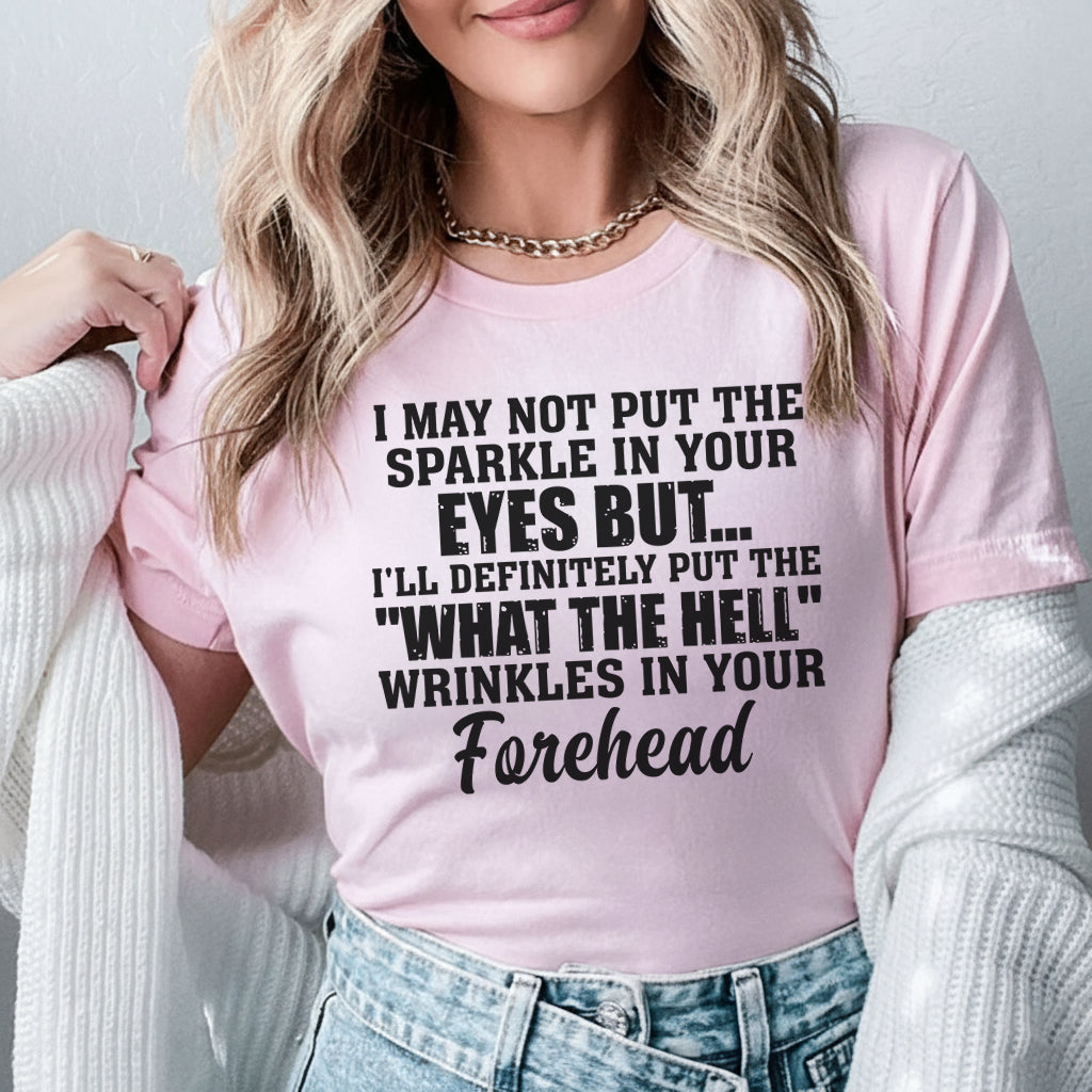 Sassy, unpredictable, and gloriously dramatic. The “I May Not Put the Sparkle in Your Eyes… But I’ll Definitely Put the ‘What the Hell?’ Wrinkles in Your Forehead” T-shirt is for anyone who doesn’t aim to impress—they aim to confuse.