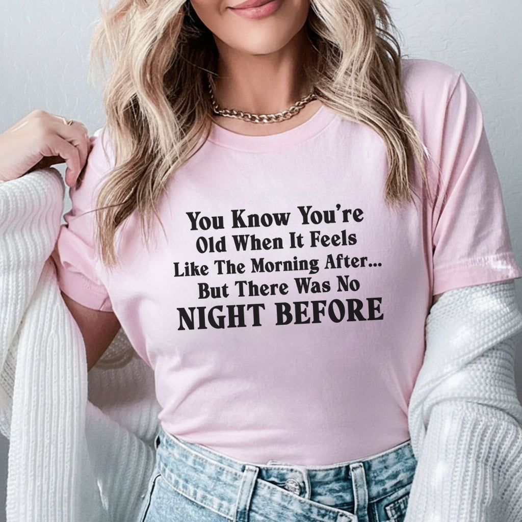 Savage, hilariously relatable, and unapologetically honest. The “You Know You’re Old When It Feels Like the Morning After… But There Was No Night Before” T‑shirt is for anyone who’s felt the joys (and aches) of aging hitting a little too early.