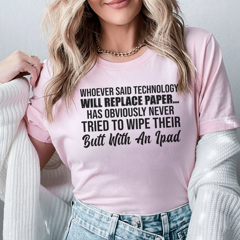 Hilarious, bold, and perfectly cheeky. The “Whoever Said Technology Will Replace Paper… Has Obviously Never Tried to Wipe Their Butt with an iPad” T-shirt is for anyone who loves absurd humor and doesn’t mind being a little outrageous.