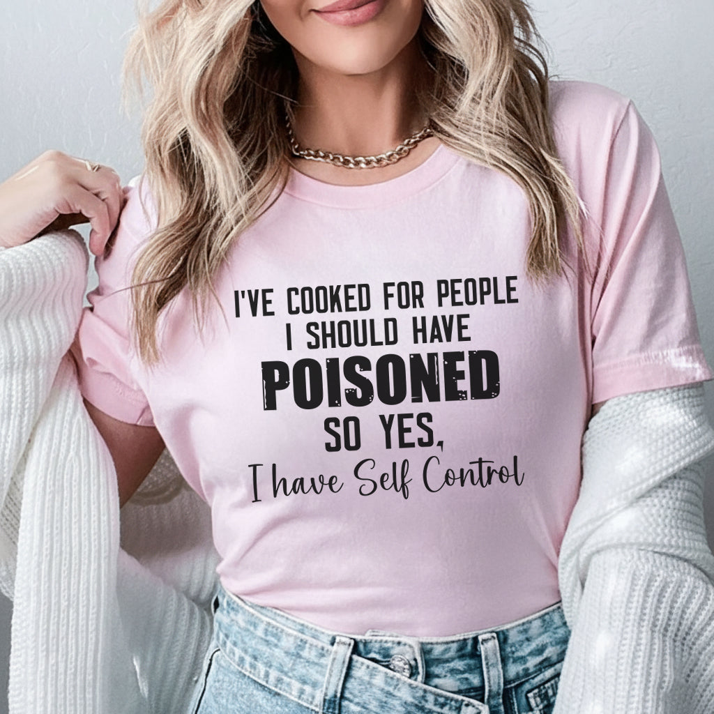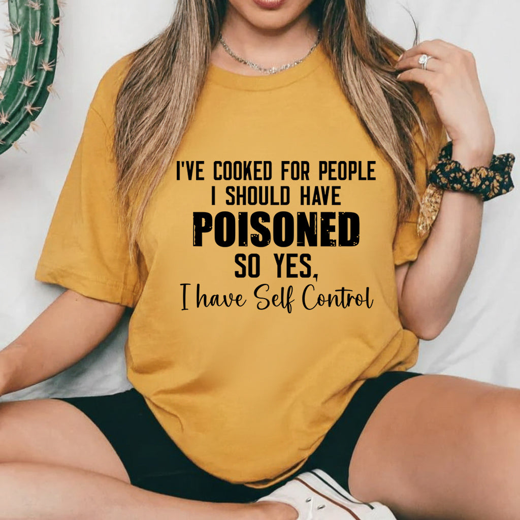 Darkly funny, savage, and unapologetically honest. The “I’ve Cooked for People I Should Have Poisoned… So Yes, I Have Self Control” T‑shirt is for anyone whose patience is legendary—and slightly dangerous.