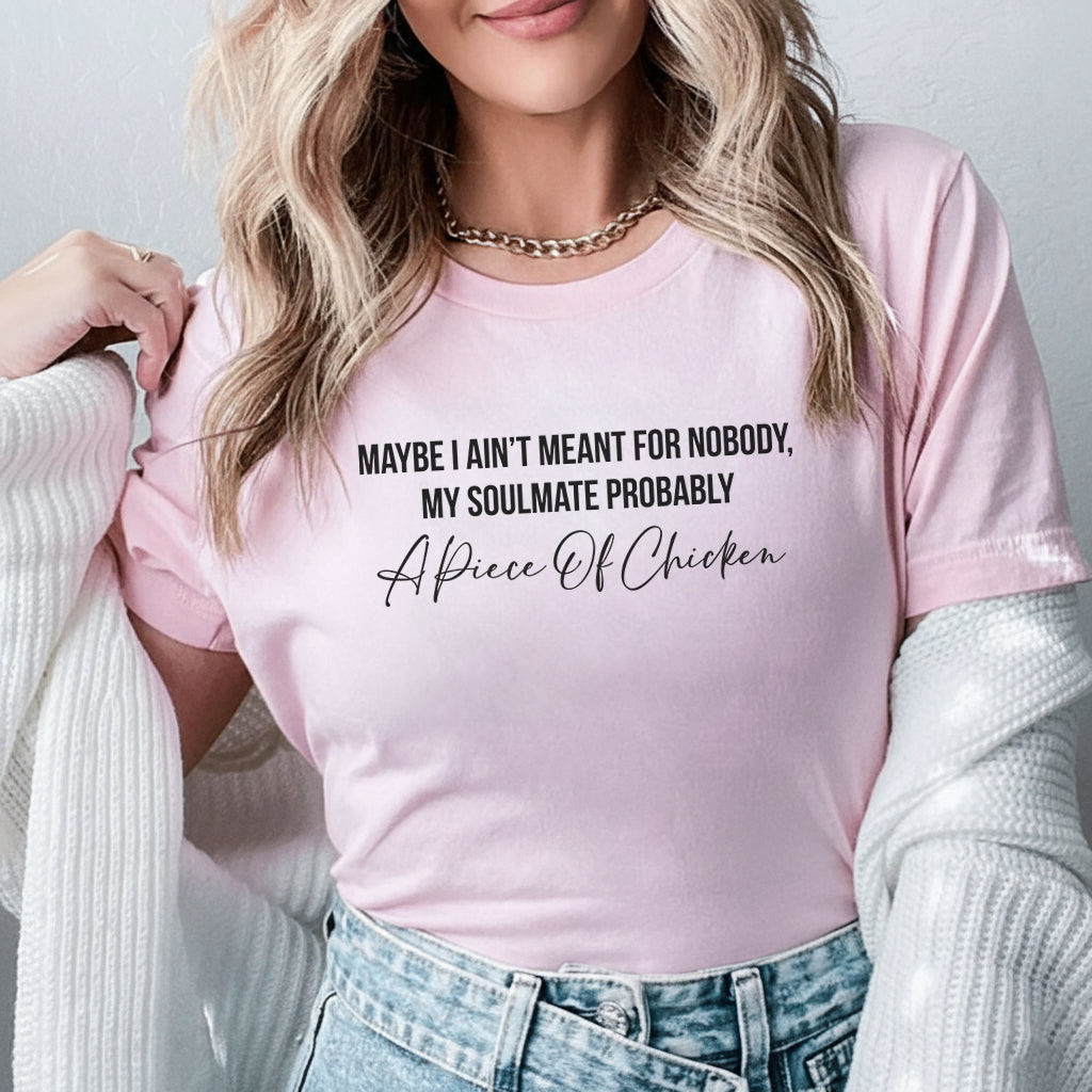 Savage, hilarious, and unapologetically relatable. The “Maybe I Ain’t Meant for Nobody, My Soulmate Probably a Piece of Chicken” T‑shirt is for anyone whose heart—and humor—runs on a love of food.