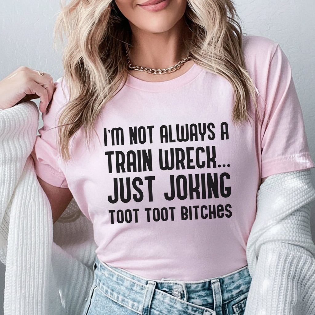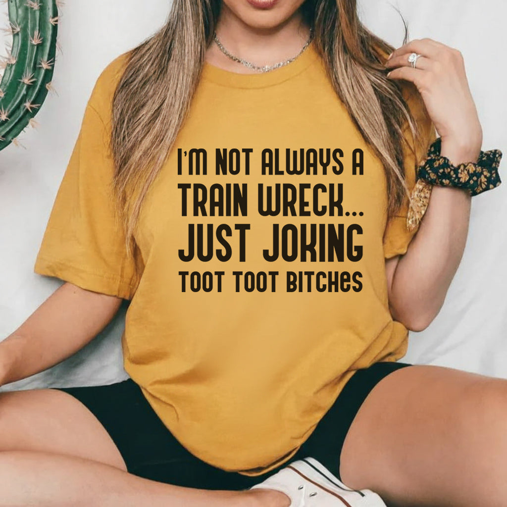 Bold, hilarious, and unapologetically chaotic. The “I’m Not Always a Train Wreck… Just Joking, Toot Toot Bitches” T-shirt is for anyone who fully embraces their messy, fabulous, and unpredictable self.