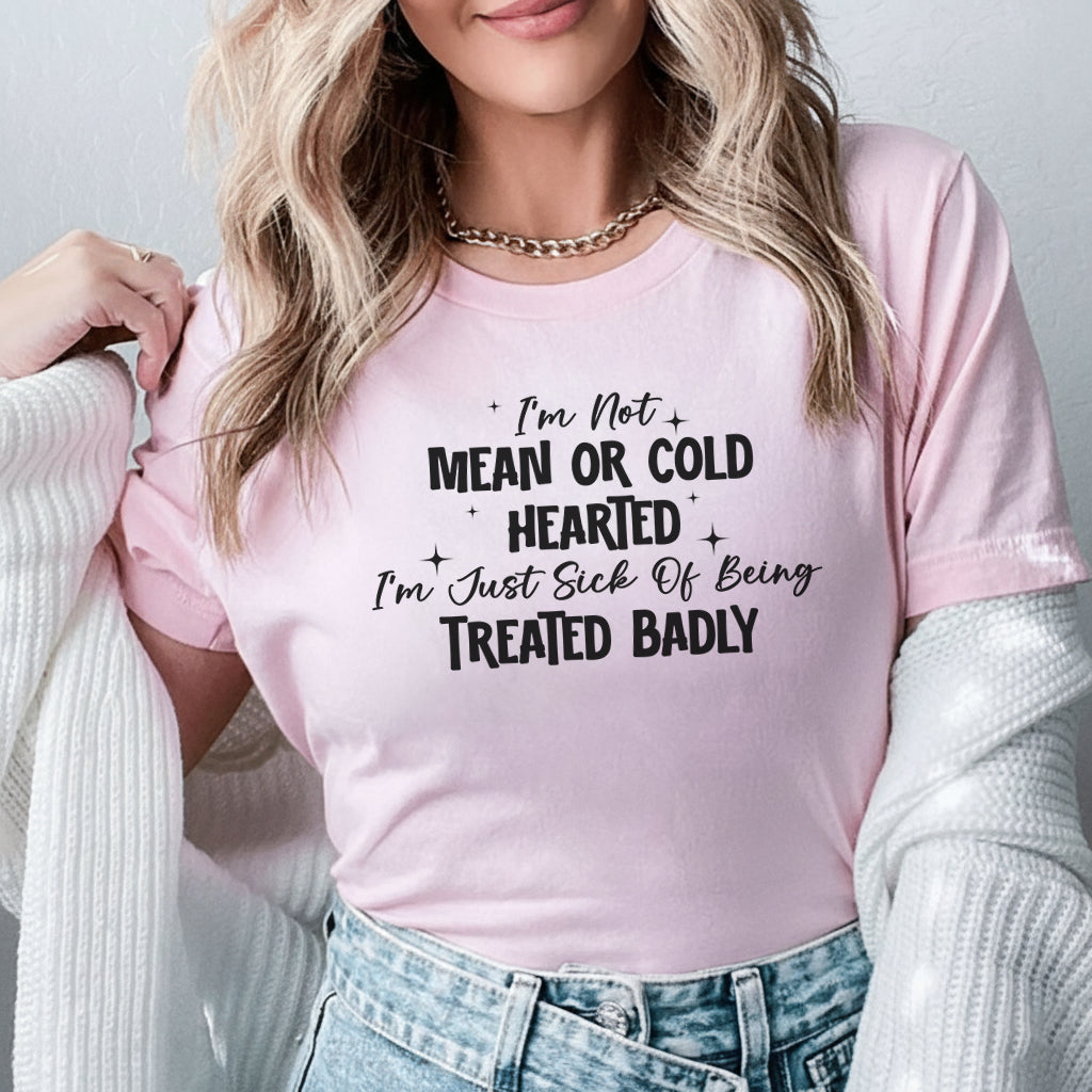 Straightforward, bold, and unapologetically honest. The “I’m Not Mean or Cold-Hearted — I’m Just Sick of Being Treated Badly” T-shirt is for anyone who’s learned to protect themselves and refuses to settle for less than respect.