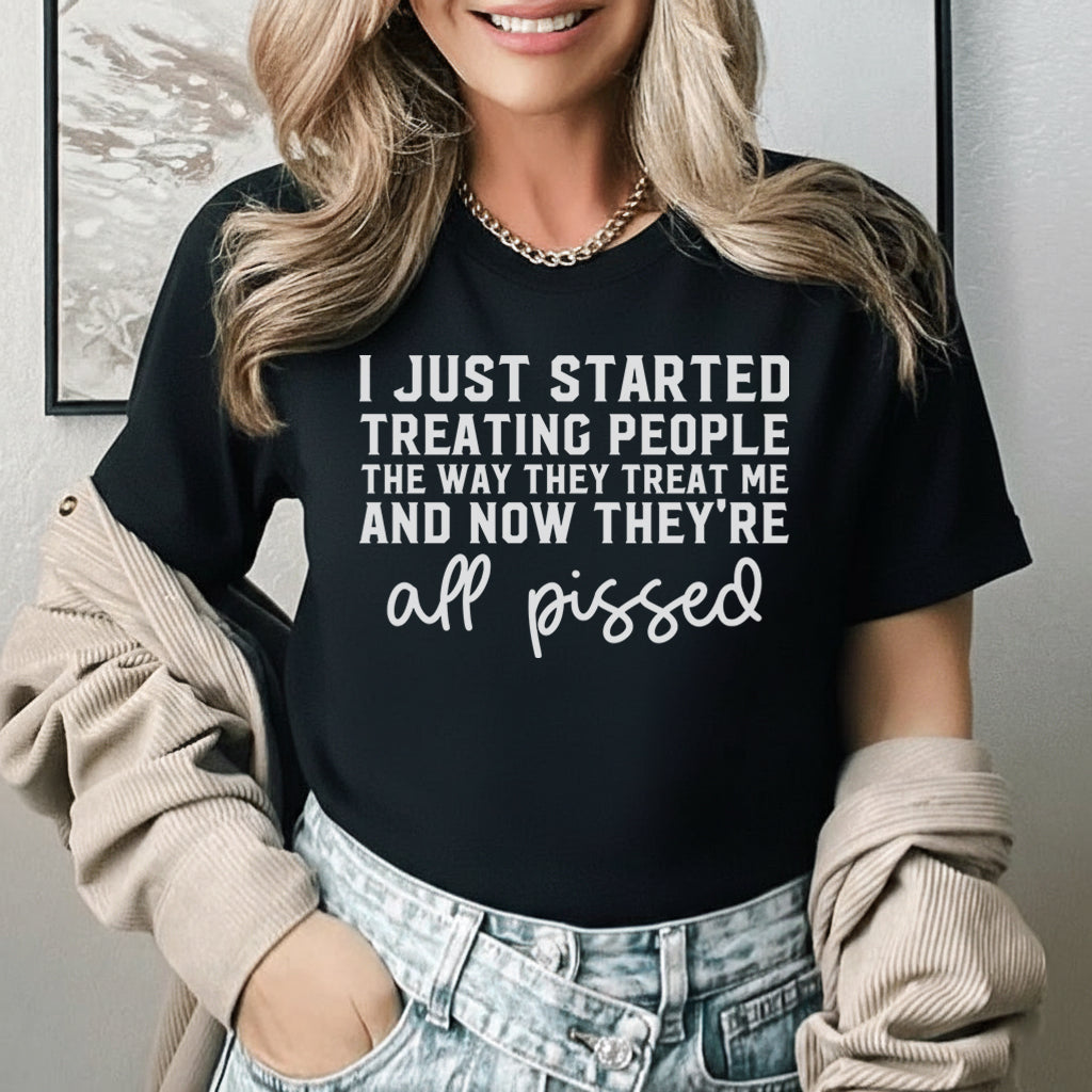 Savage, bold, and perfectly unapologetic. The “I Just Started Treating People the Way They Treat Me… And Now They’re App Pissed” T‑shirt is for anyone who’s done playing nice and isn’t afraid to call it out with humor.